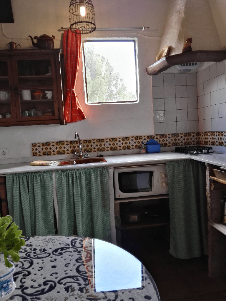 Esta casita dispone de cocina completa, con microondas, sartenes, cacerolas, tostadora, cafetera y, en definitiva, las cosillas más habituales en estas estancias.