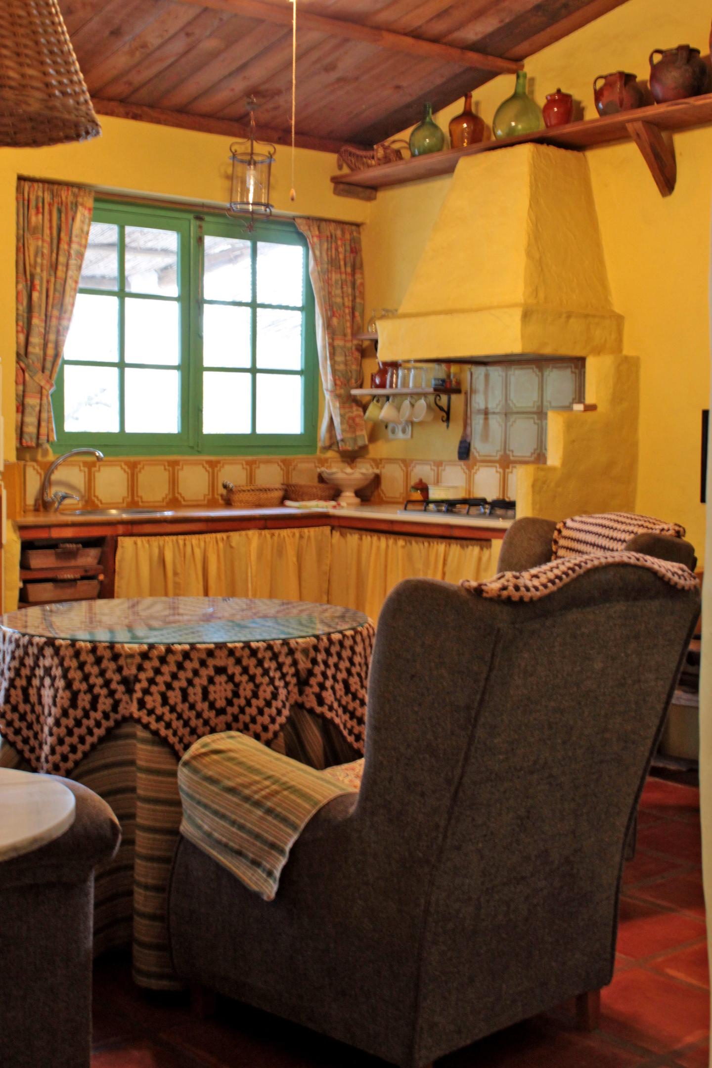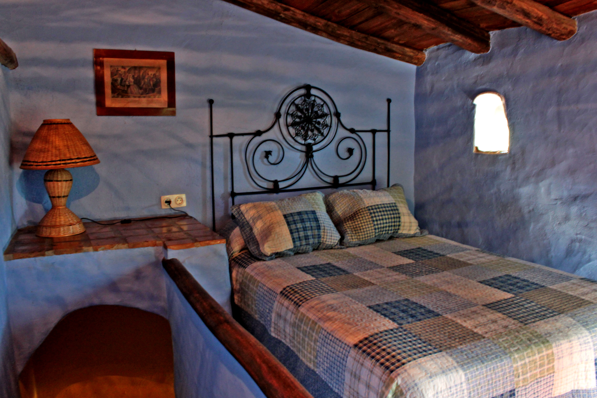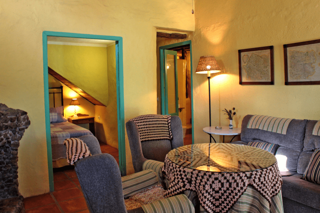 La casita de «El Palomar», cuenta con dos habitaciones acogedoras con camas de matrimonio, salón con cocina, baño completo con placa de ducha, aire acondicionado en la habitación de arriba, por ser mas calurosa.